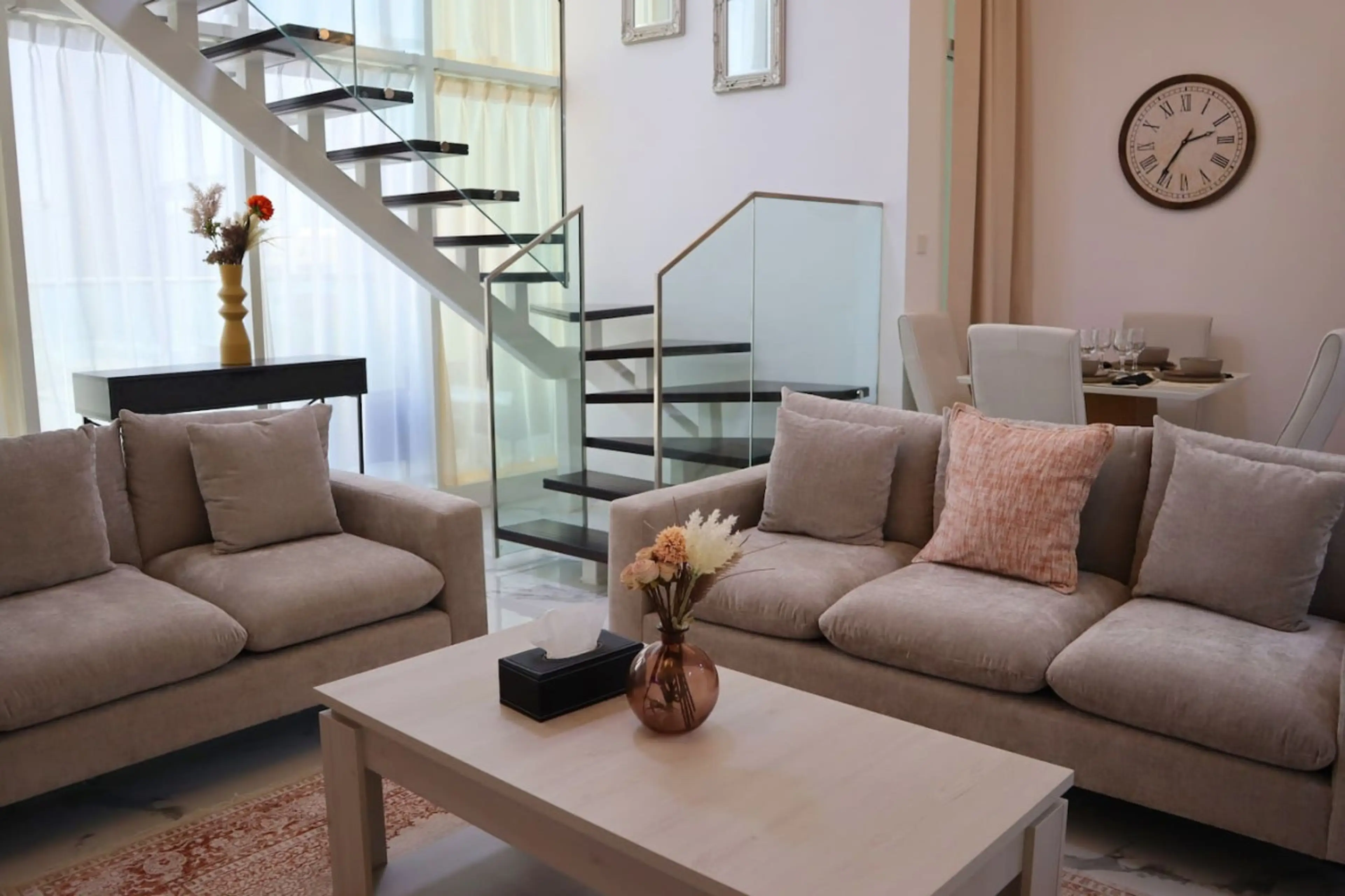 Discover comfort in our cozy 2-bedroom, 2.5-bathroom apartment nestled in Oasis 2, Masdar City, Abu Dhabi. Equipped with an HD TV, dining table for 4, and comfy sofas, along with complimentary WiFi. Whip up meals in the well-stocked kitchen and unwind with provided toiletries in the bathrooms. Ideal...