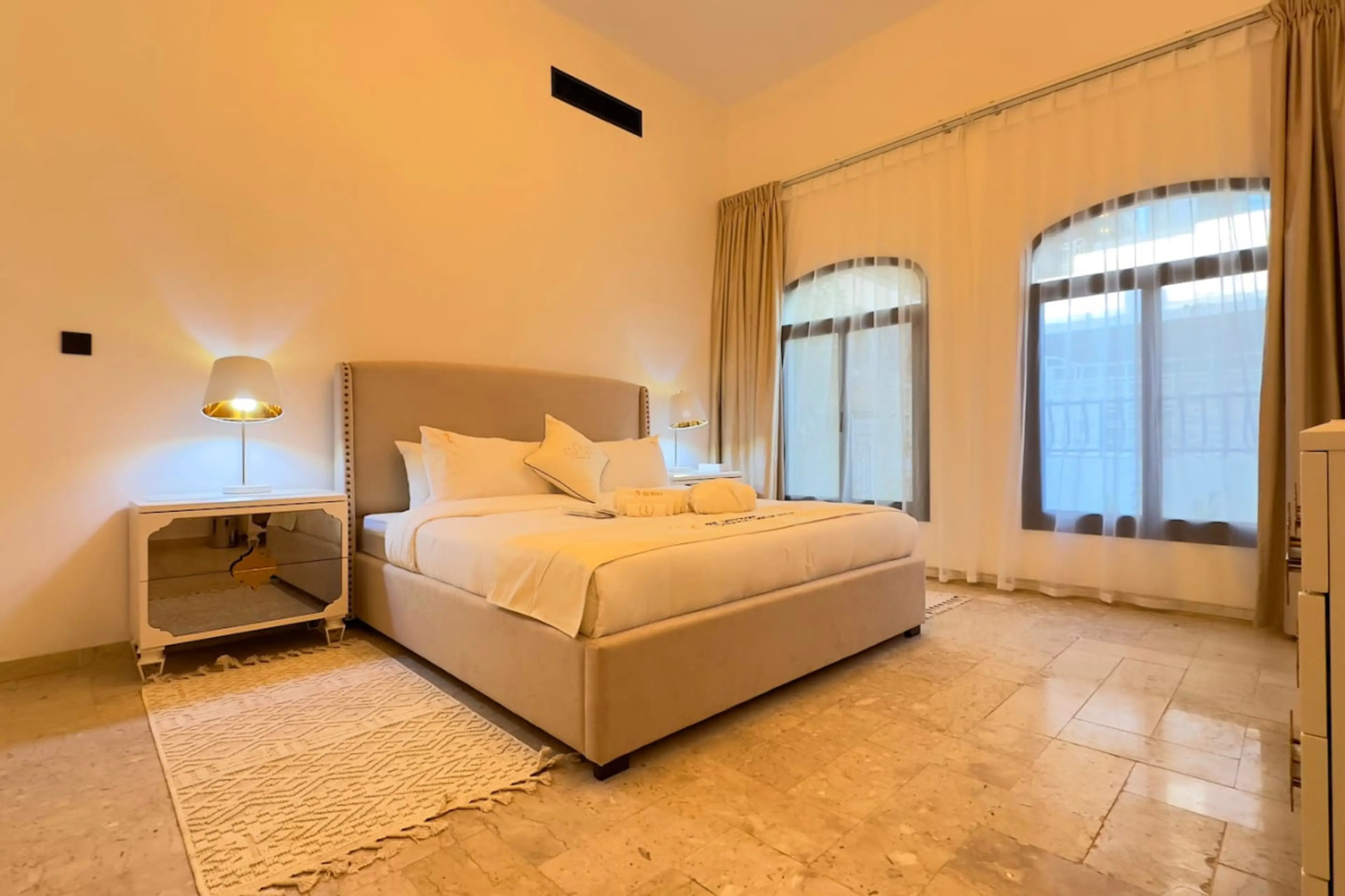 Experience luxury living in this stunning 5-bedroom villa in Abu Dhabi, accommodating up to 11 guests. Perfect for families and groups, it features 3 king beds, 2 twin rooms, a maid's room, 6 bathrooms, and a fully equipped kitchen. Enjoy an entertainment room with a 70-inch Smart TV and a private t...