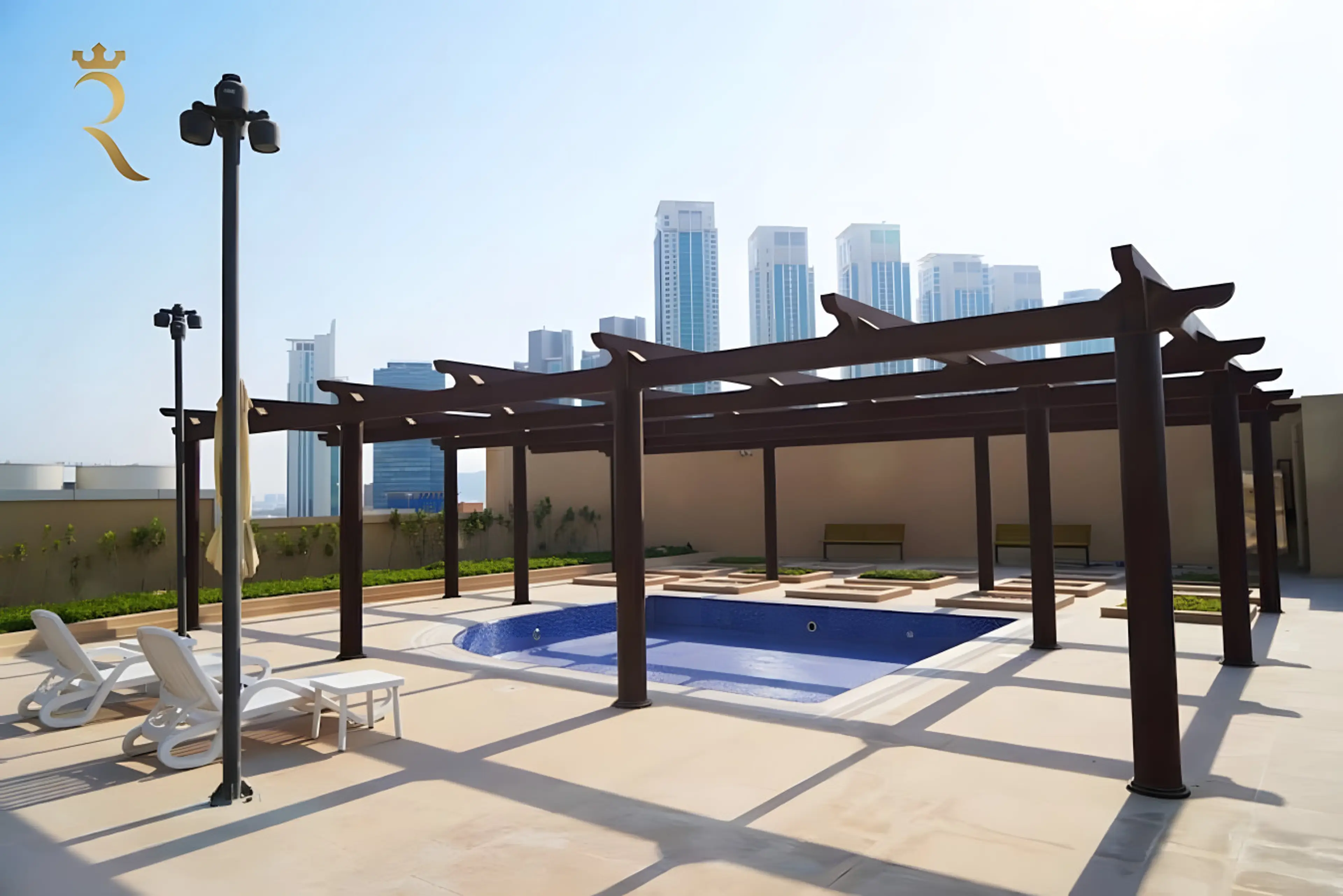 Welcome to our stylish studio apartment in Julphar Al Reem, perfect for up to 3 guests. This cozy space features a king-size bed, a comfortable sofa , and a Smart TV. Enjoy a dining area for two, a fully equipped kitchen, and a stocked bathroom. You’ll also have free Wi-Fi, a private balcony with sc...
