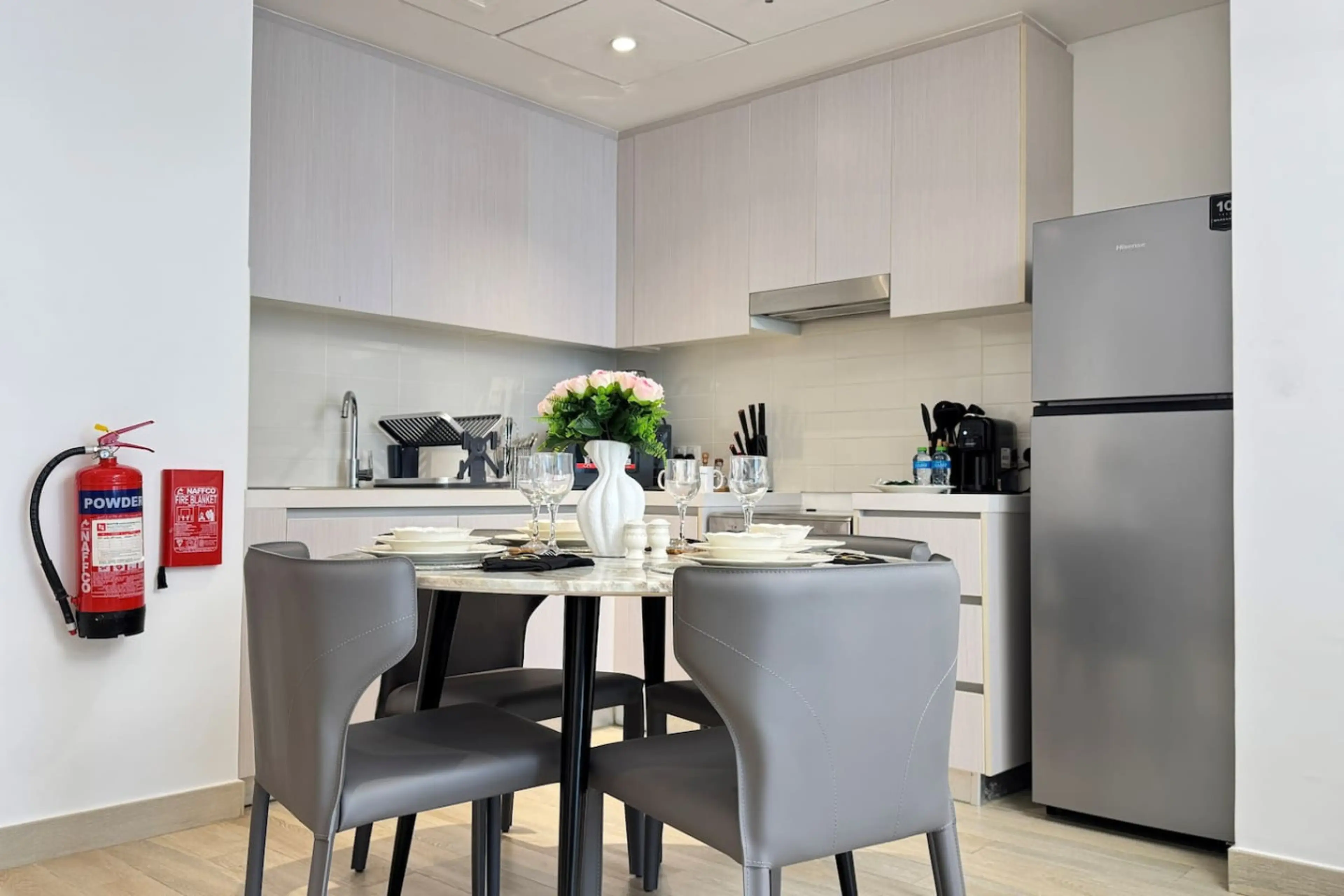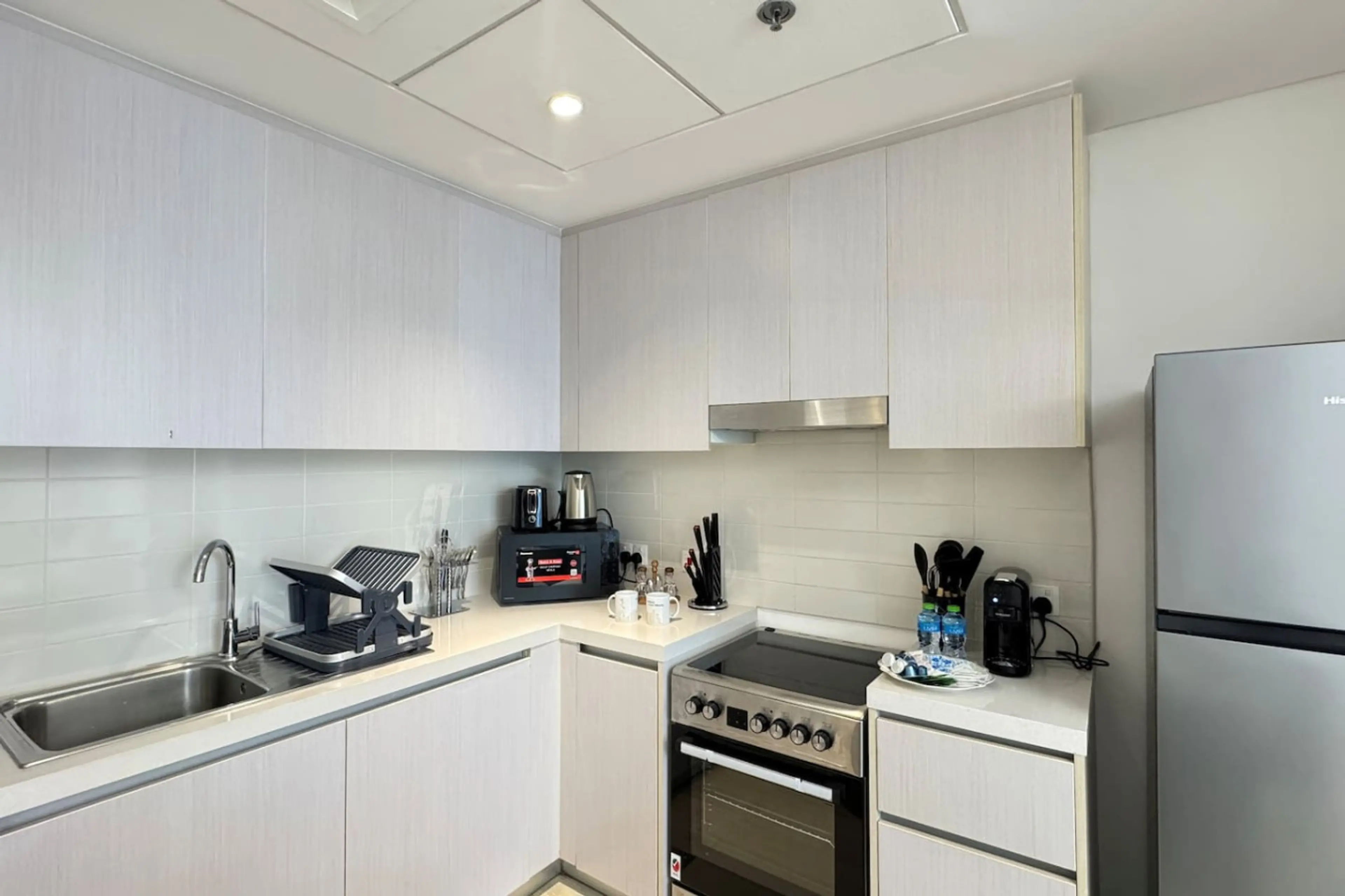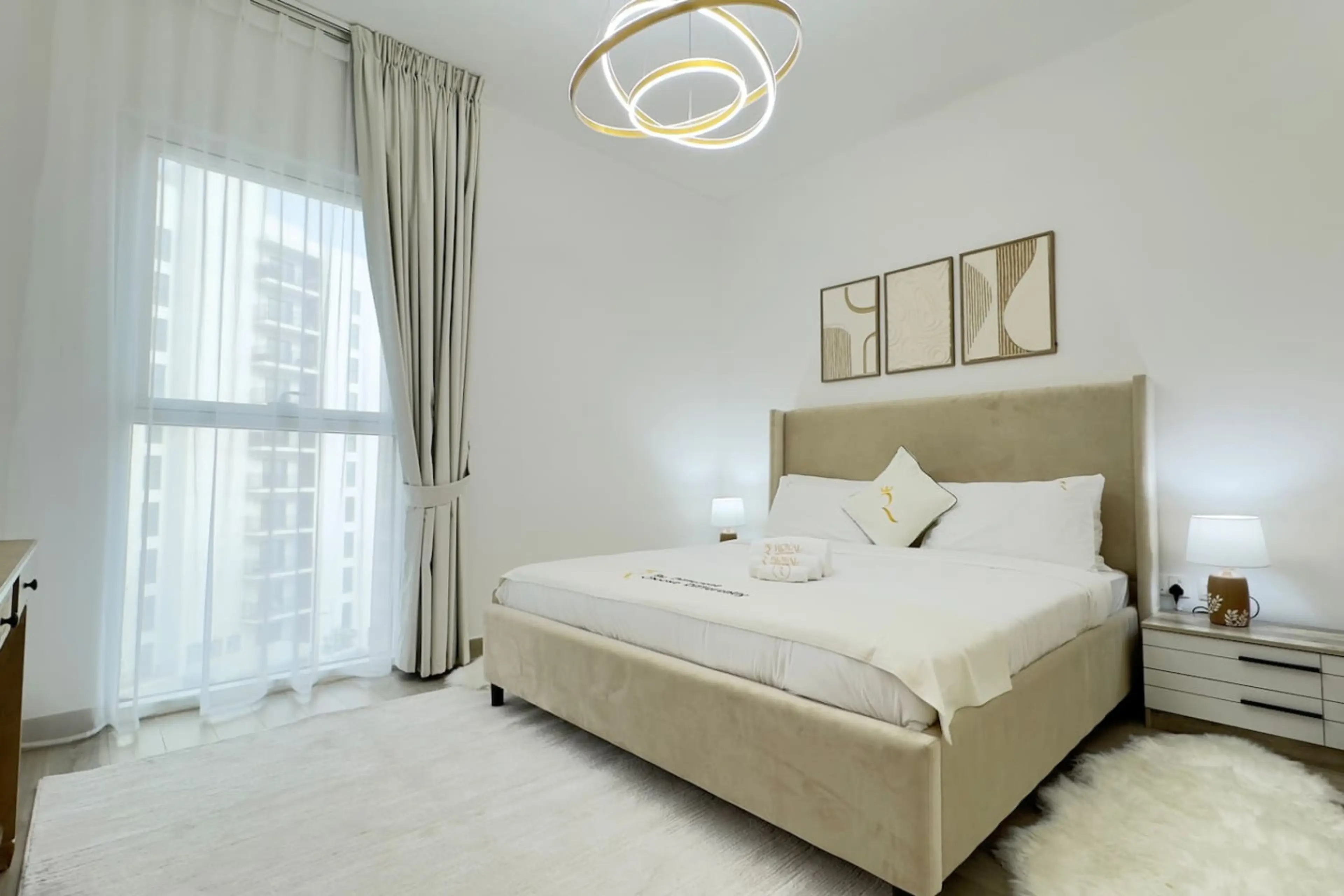 Welcome to my stylish 1BR apartment in Waters Edge, perfect for a comfortable stay. This space is ideal for two guests and features a cozy king-size bed, a comfortable sofa in the living area, dinning for 4, and a private balcony to relax. Enjoy a fully equipped kitchen, a fully stocked bathroom, a...