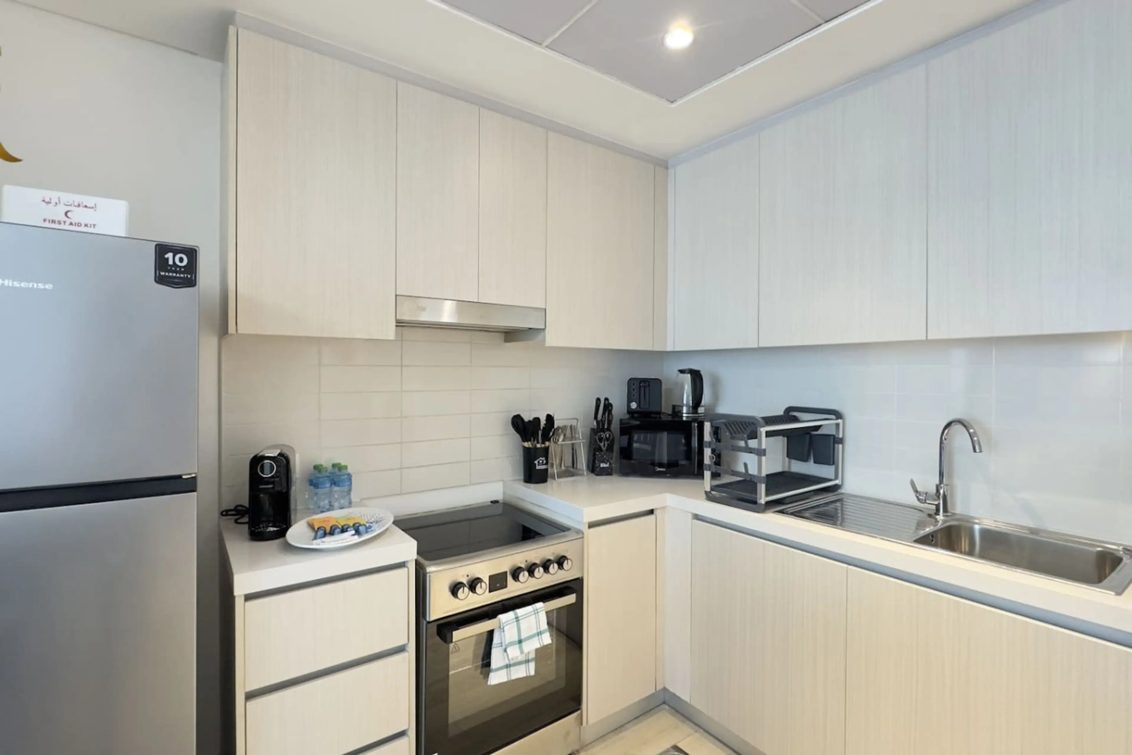 Modern 1BR apartment in Water’s Edge, Yas Island. Enjoy a comfy king bed, balcony, full kitchen, pool, gym, canal walk, and free parking. Family and pet-friendly with baby gear on request. Near Yas Mall, Ferrari World, and Yas Marina. Ideal for short or long stays. VAT (5%) and Tourism Fee (6%) appl...